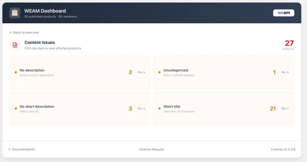 But now WEAM offers you a Dashboard